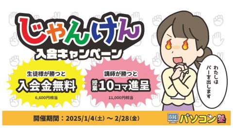 市民パソコン塾では今だけのお得なキャンペーンとして入会キャンペーン」を実施中です!